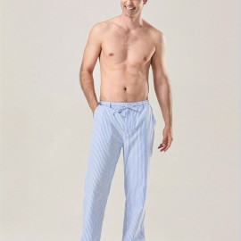 Men's Lightweight Striped Casual Pants with Elastic Waist and Pockets - Perfect for Casual Attire
