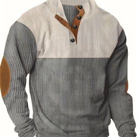 Mens Retro Color Block Knitted Mid Stretch Stand Collar Pullover Sweater - Warm, Casual, Long Sleeve, Button Front, Machine Washable - Perfect for Fall and Winter, Old Money Style