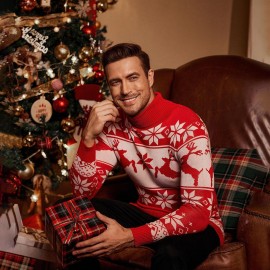 Men's Slim Fit Turtleneck Sweater - Casual Solid Color Knit Pullover for Fall/Winter, Polyester Blend, Best for Christmas
